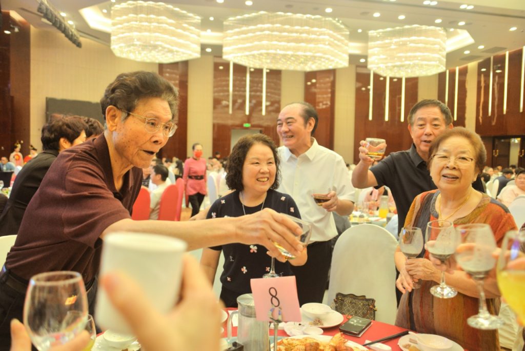 领导祝酒,举杯共饮家乡情。