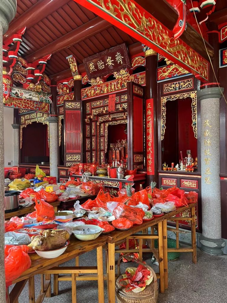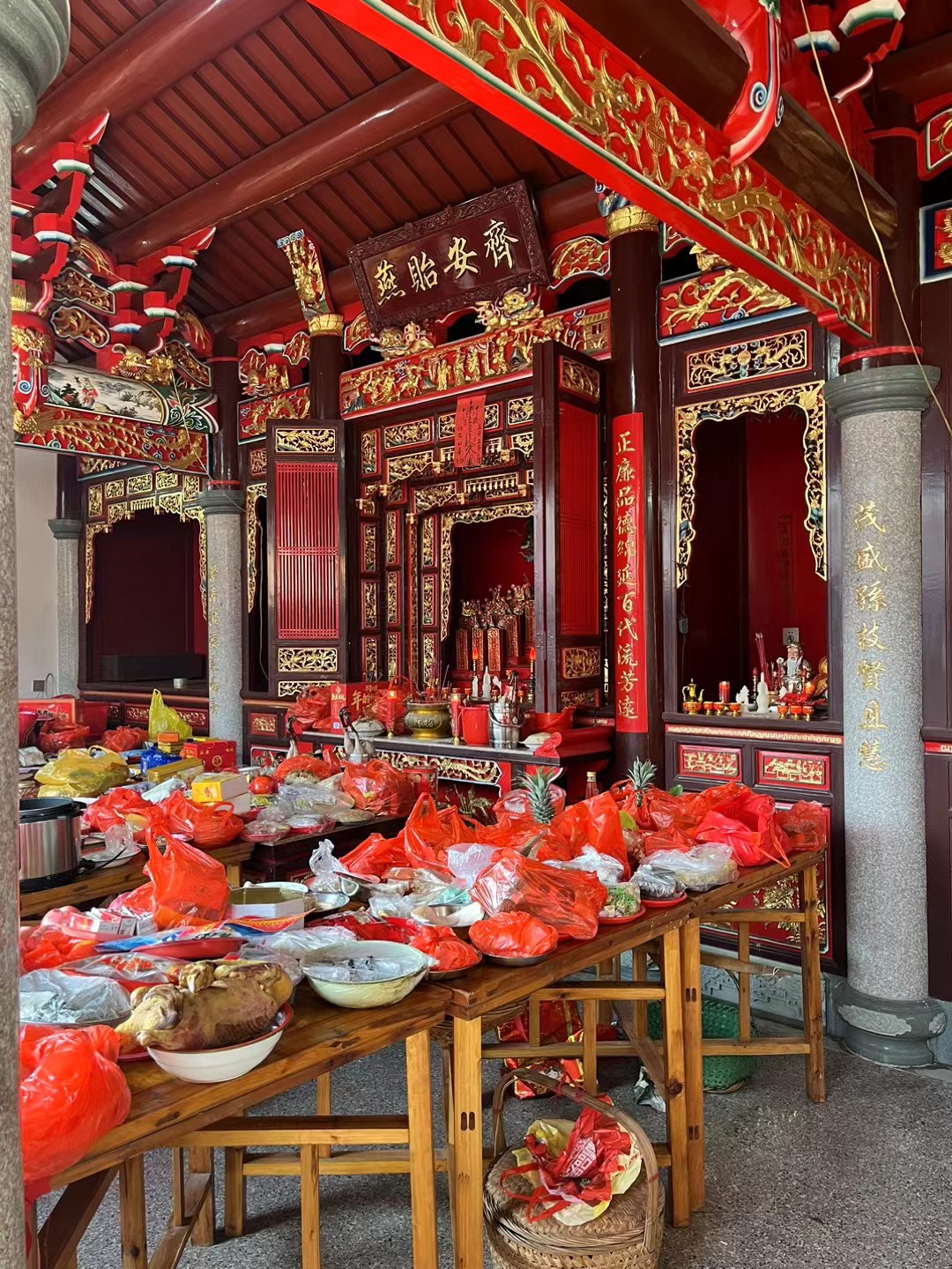 第二天,因为我有个姨表弟,他们村信奉的里主尊王诞辰,佛事宴请,英济庙始建于宋熙宁元年(1068年),庙内奉祀里主尊王,相传系北宋名将杨延昭的化身。在酒店摆宴,我和这个姨表弟比较熟悉,就我去赴宴了,这条线是亲戚,亲戚如果佛事摆宴请客的话,不需要带份子钱,只需要买一个大鞭炮或者大烟花,还要一份食材(比如一包香菇,或者一捆米粉,或者一箱泡面都可以。)然后我就扛着个大鞭炮去吃宴席,改换兄长去10月6日的婚宴这里帮忙。