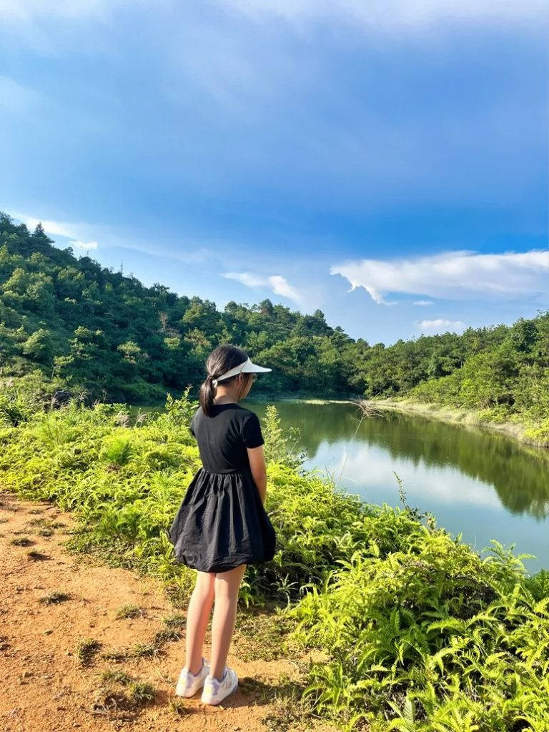 山顶的一个水库,闲着就带娃上山晃一晃,森林区现在已经没有手动割防火带,改成了在山区中间开一条防火的水泥路,把山体森林给分隔开,后期如果山火的话,可以起到隔离火带的作用,所以现在爬山都可以顺着马路走了,挺方便。