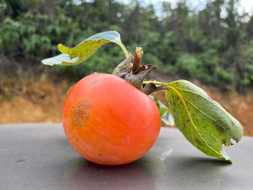 山上的野柿子是真的甜,其实这不是野柿子,野柿子都是小小颗的,这应该是农村公社化时代开荒的先辈们种下的,后来没有路,也没有去管理和采摘,成了野柿子。