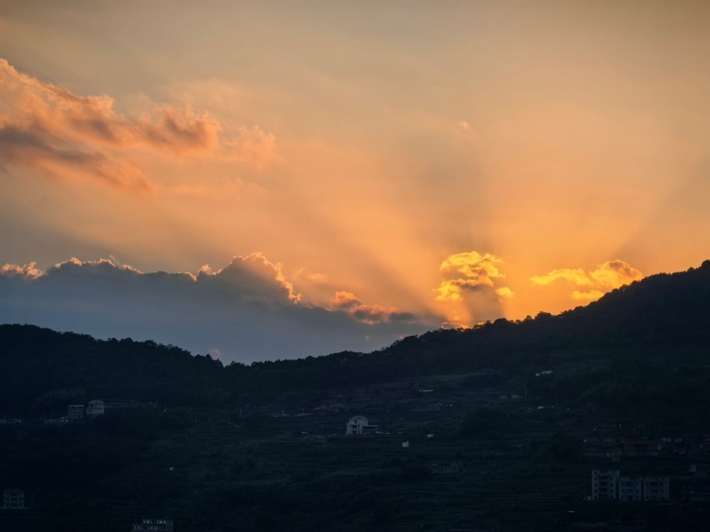 今年21号麦德姆台风的原因,虽未直接对福建地区产生影响,但是加强了副热带高压,副热带高压下沉气流空气增温非常明显,八闽大地热得不要不要的,室内温度都有33度以上,一点都不秋天。村里的夜幕晚霞,也是极美的。