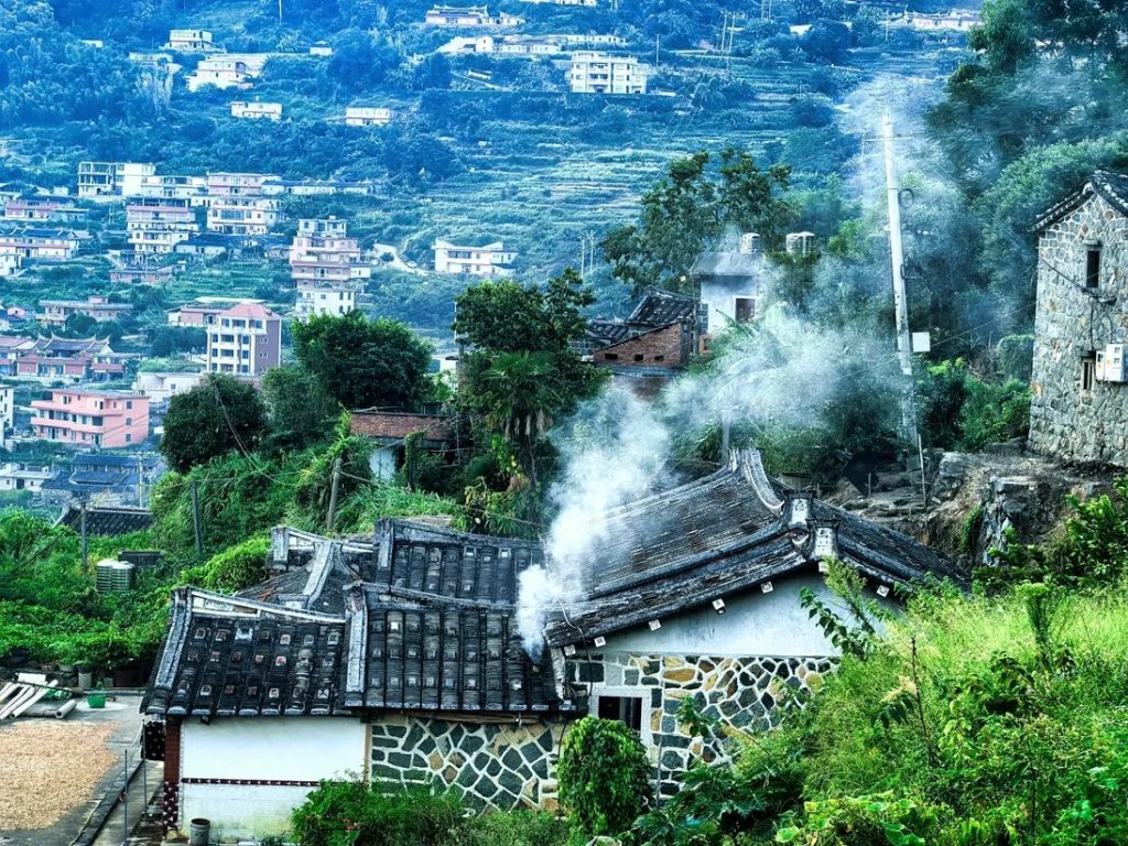 邻居家的傍晚炊烟袅袅,这个景象我挺喜欢的,从小看到大。