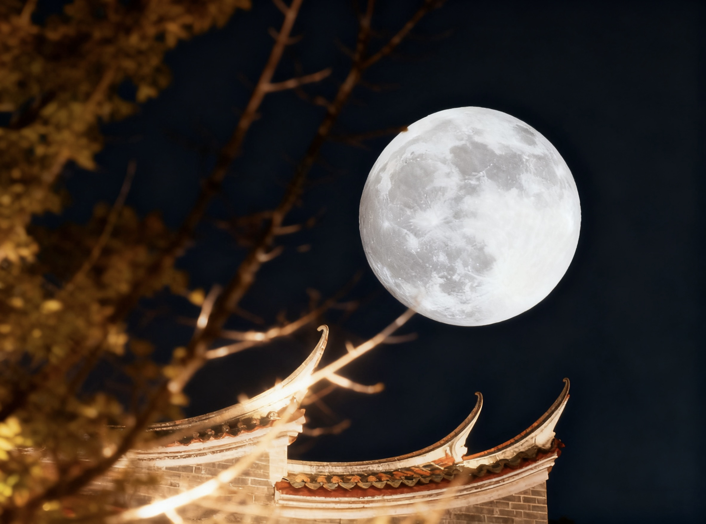 @obaby 月亮是拿堂弟的华为拍的,拍完之后都想扔苹果手机了,扩图跟豆包说加上屋檐和树枝当前景,它生成的屋檐是北方的硬山顶,再给它个指令才生成燕尾脊,还是挺好用的。