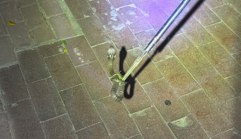 在给娃儿看抖音各类警报音的时候,突然接到丈母娘打来的微信语音通话,接起来,她很慌张的说,小区电动车停车棚的后门台阶有眼镜蛇。