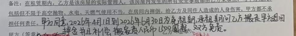这事这么难搞的原因,就是媳妇儿善良,看她带孩子,替她和孩子读书考试考虑,给她口头的一个优待,期间我们沟通过程中,也提及了,可以照样送她一个月免租,但是我们需要7月5日前入住,她就是不肯,一直咬着说我媳妇儿答应她的7月再搬。