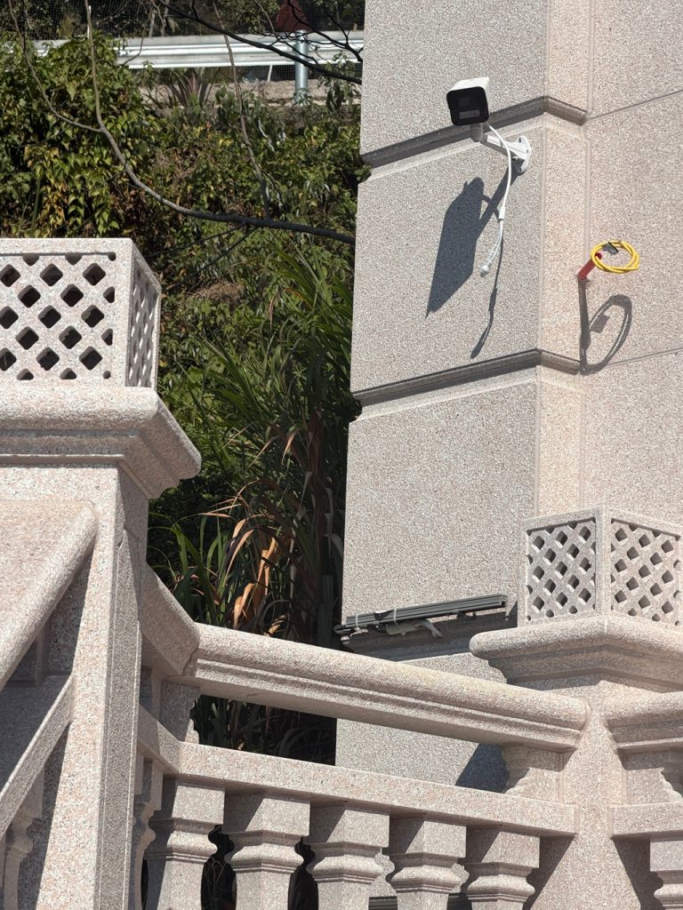 下单重新买新的设备,我自己爬上去安装,狗电工预埋POE网线的时候,给我放的位置,一言难尽,算了算了,我再装明线吧。干挂墙的石头是真的硬,唉,又不能用冲击钻,只能用玻璃钻头一点点的磨进去,不好玩,唉,手都快废了,唉,术业有专攻,专业的事情还是交给专业的人做(实则是不好玩,这个头是6mm的,我怕电工装的时候马虎没注意,和4mm的混了,我干脆就自己先装上了。),电工,你抓点紧吧!剩下的监控摄像头我就不管了。