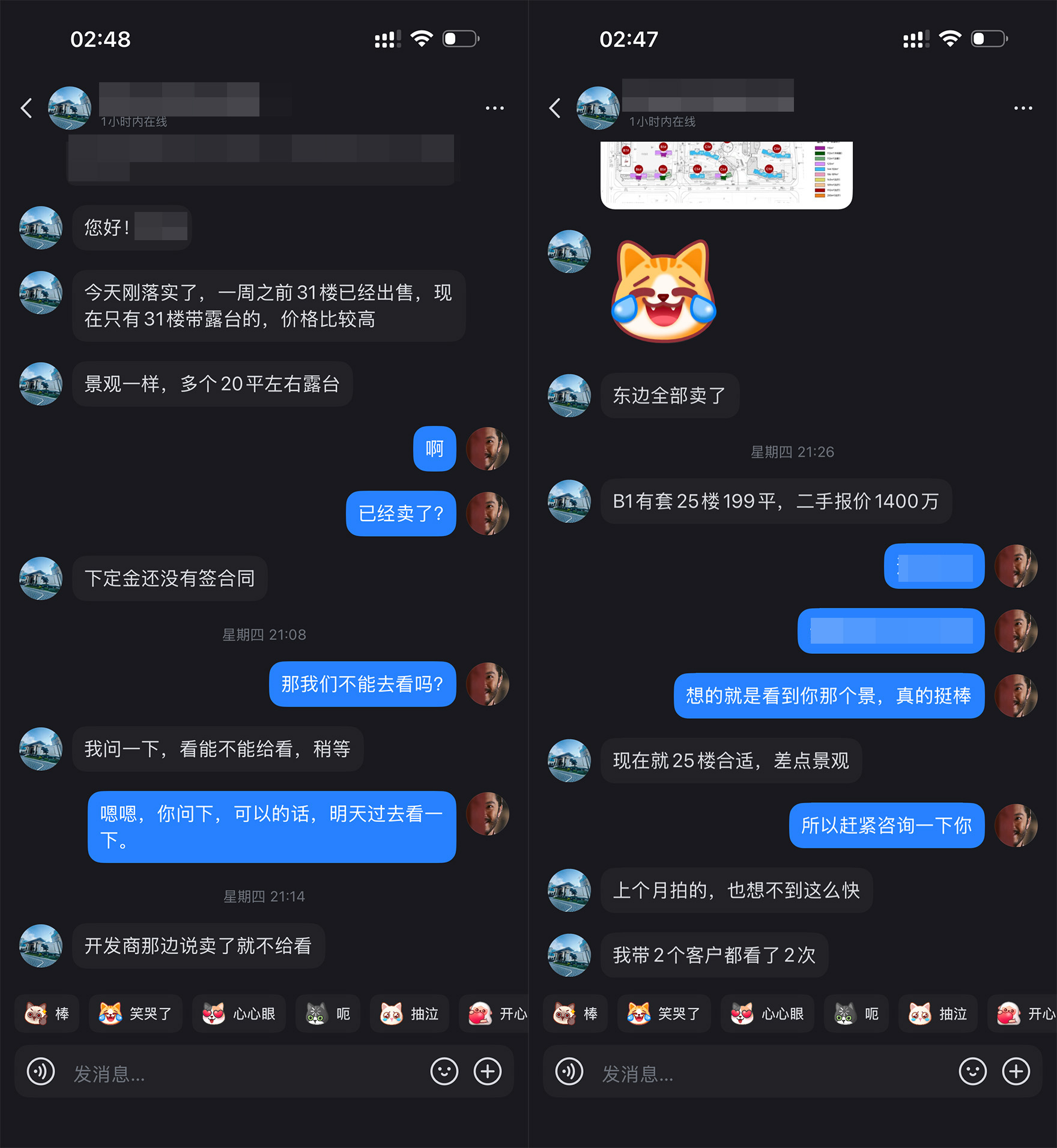 这过程中,还发生了一件事,我都已经签认购了,怎么小红书上还有好多博主在拍我这套房子,小伙伴推给我看视频,我赶紧下载个小红书上去联系联系,套路一下中介,看能不能带我去看房。如果这中介还能让我去看房,那我就要去找开发商麻烦了,最少也得再给我便宜100,不然我跟开发商没完,最后中介回复开发商拒绝新客户看房,好吧,这100要不到了。