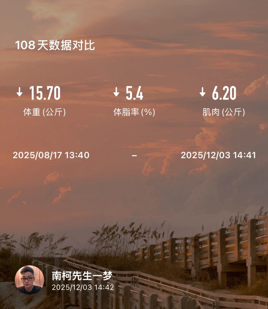 嗯嗯,本来老早就计划更新一篇减肥大计的,呃,懒了,就此发一发效果截图,三个月减重30斤多,我娘亲都心疼了,说我每天都吃的这么清汤寡水的,都没有荤腥。最近这个月都没有在测量,体重应该保持在这个平台期上下波动吧!大家都说我这个人好可怕,想做什么就做,对自己也挺狠的,说减就减,说降就降。